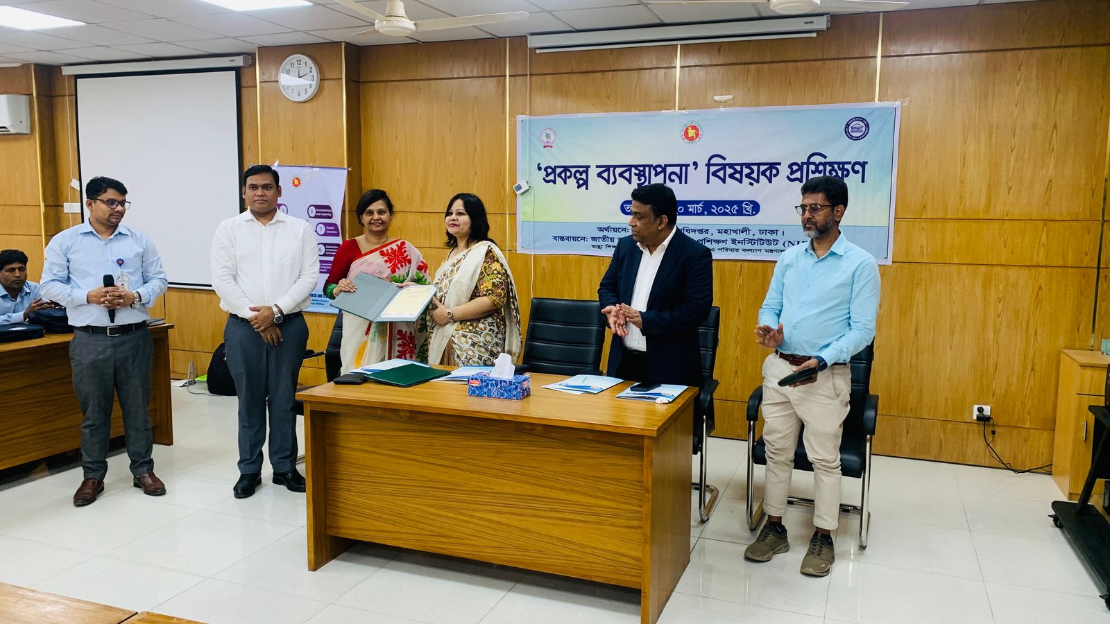 'প্রকল্প ব্যবস্থাপনা' বিষয়ক প্রশিক্ষণে মহাপরিচালক মহোদয় কর্তৃক প্রশিক্ষণার্থীদের সনদ বিতরণ।